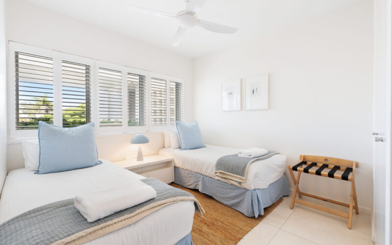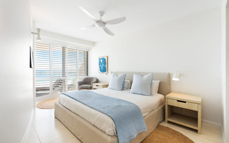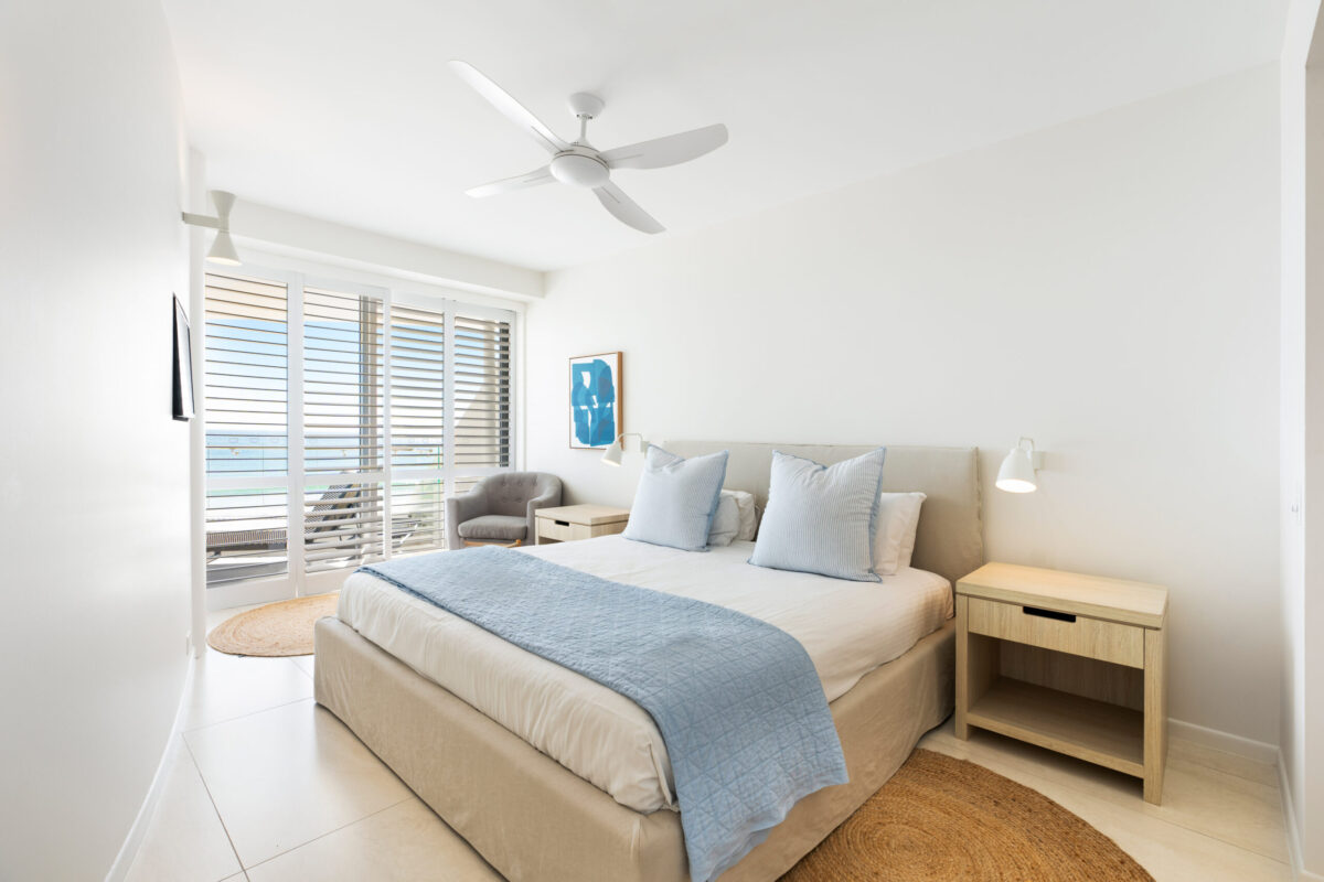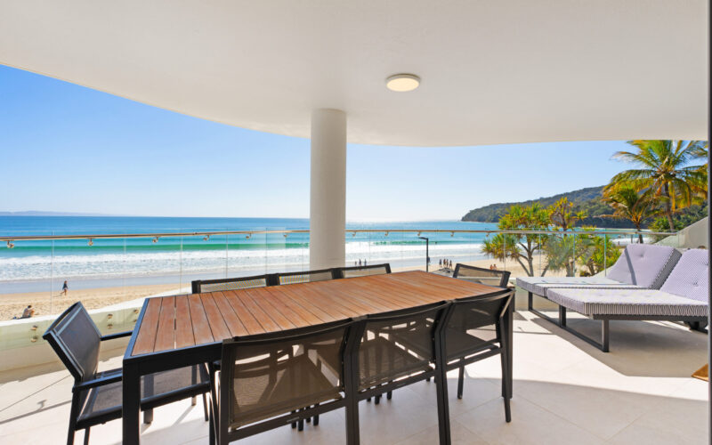 Step out onto the large, wide veranda – the perfect spot for lounging in the sun, dining alfresco, or enjoying sunset drinks as dolphins, turtles, and migrating whales pass by. Direct access from the balcony takes you straight to the sand, with complimentary CoolCabana and beach chairs ready for your use.