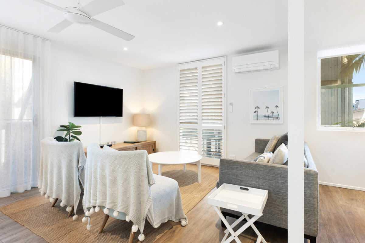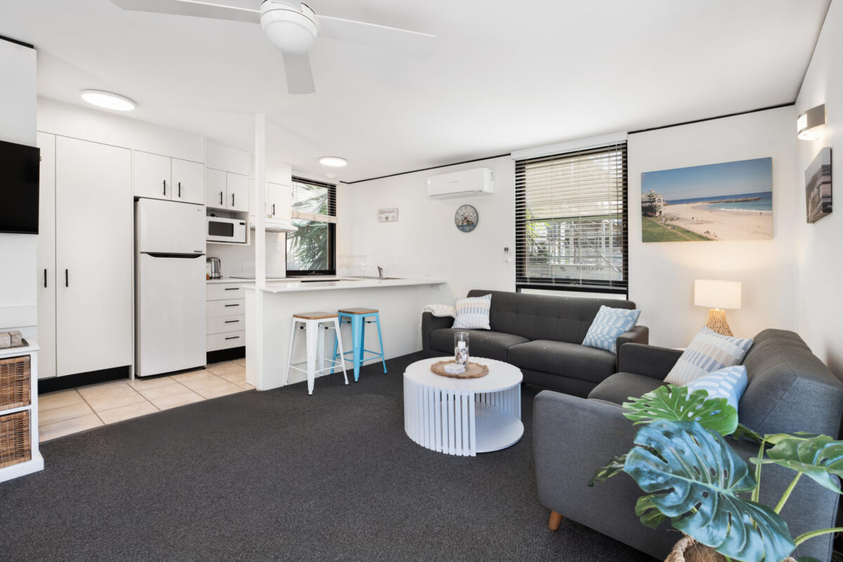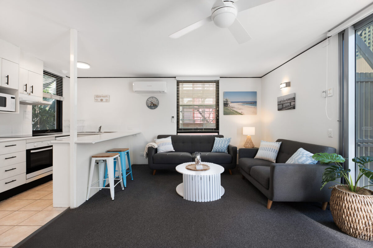 Standard Beach Houses feature an upgraded layout with the added luxury of two bathrooms. Ideal for families seeking both comfort and affordability holidays, these accommodations offer a blend of modern amenities and a touch of renovation. Equipped with full kitchens, spacious living areas, separate laundry facilities with washer and dryer, and efficient air conditioning, our Standard Beach Houses redefine relaxation. Enjoy superior quality linen provided throughout the property. Sleeping arrangements include one queen bed and two singles, catering to the needs of families and small groups alike.